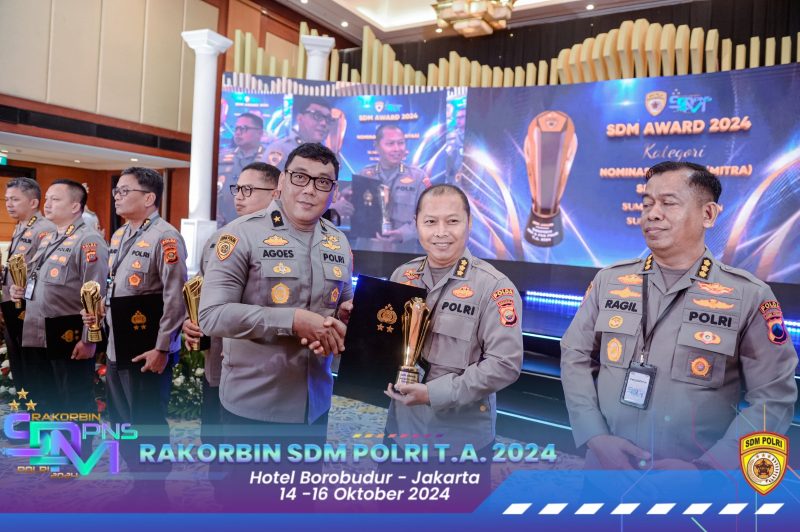Bengkulu, sumatraterkini.id – Karo SDM Polda Bengkulu Kombes Pol Sih Harno, menerima penghargaan SSDM Award pada Rakorbin SDM Polri tahun 2024, 14-16 Oktober 2024, di Mabes Polri.